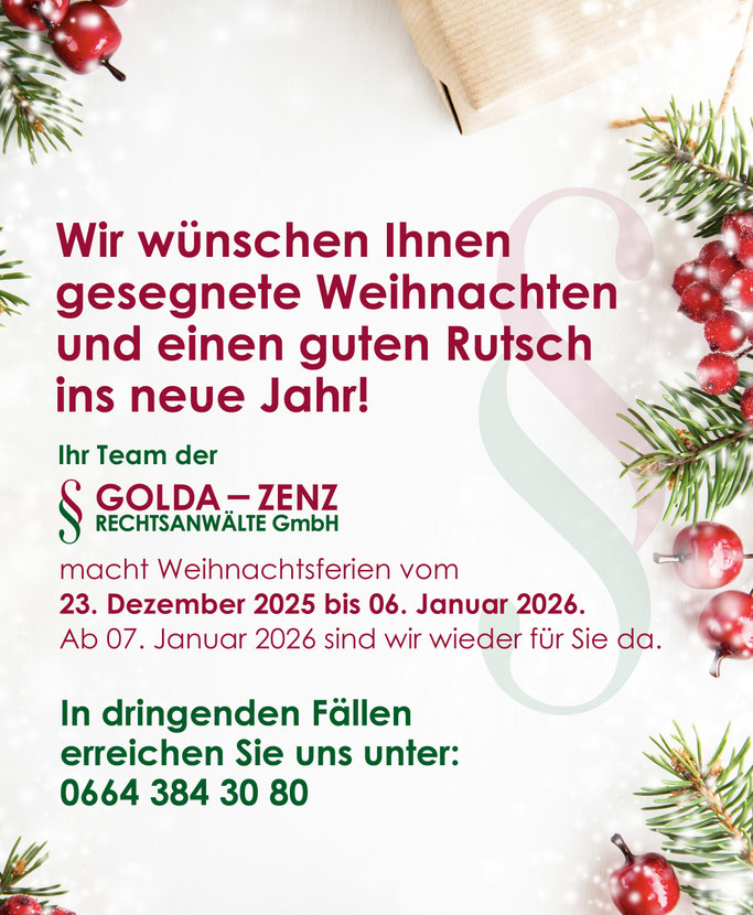 Seit 1.3.2024 bin ich in die Liste der Rechtsanwälte von Oberösterreich eingetragen. Seither freue ich mich über die Partnerschaft durch Eintritt in die GOLDA-ZENZ RECHTSANWÄLTE GmbH.